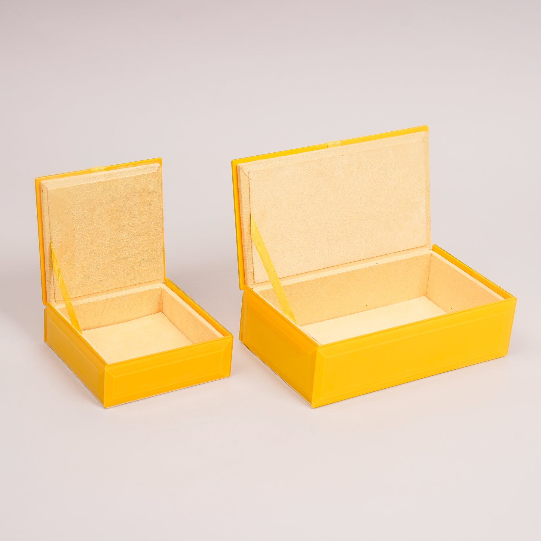 The Marigold Harmony Box in vibrant yellow is perfect for joyful occasions and festive gifting. Designed with golden detailing, this set of two is ideal for weddings, favours, or keepsakes, bringing brightness and elegance to every celebration.