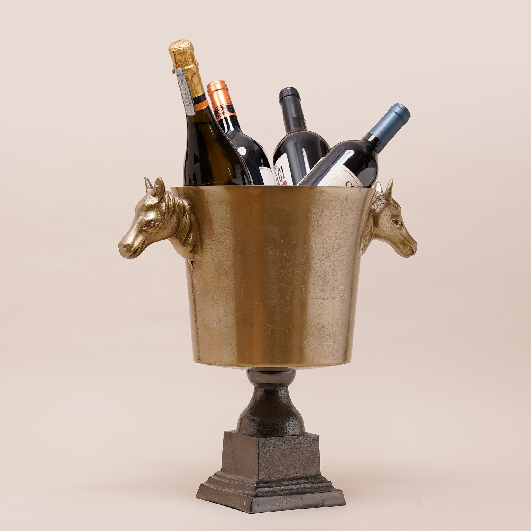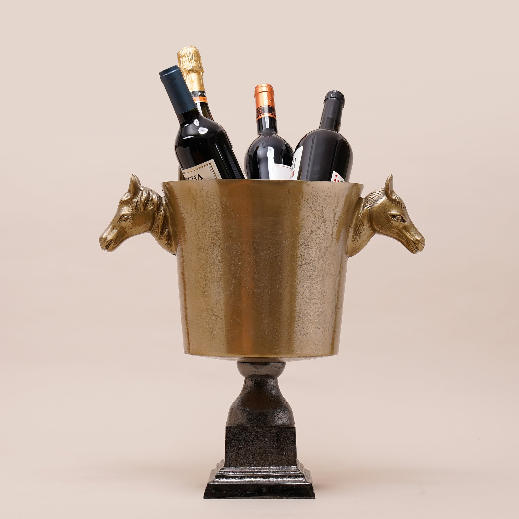 Crafted in rich Aluminium with sculpted horse-head handles, the Equinox Cooler embodies strength and sophistication. A commanding piece from the Sanctum Collection, it’s perfect for chilling your finest spirits or standing tall as a decor icon.