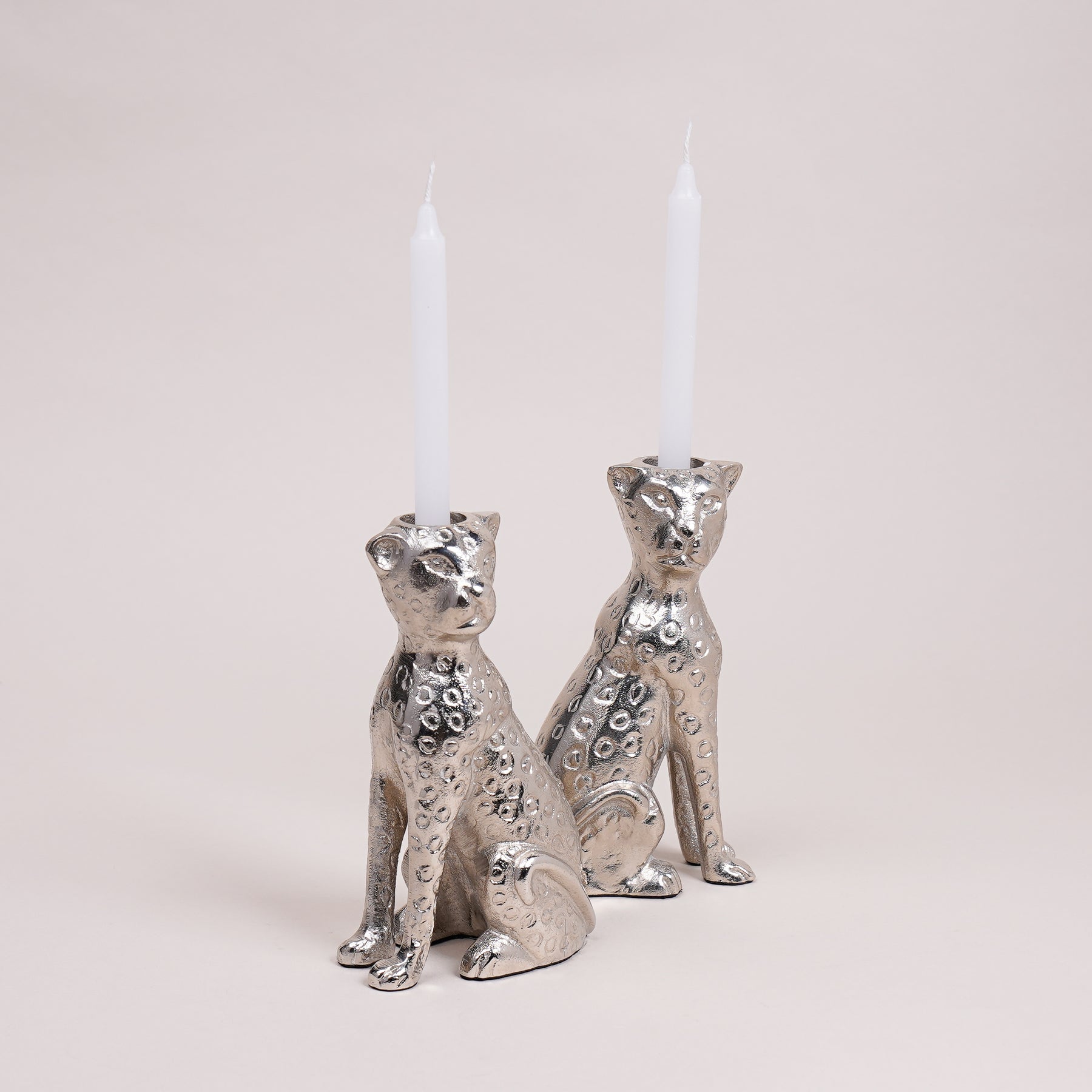 Bring a touch of the wild into your home with the Savannah Leopard Candle Holders. This elegant set of two features intricately designed leopards that double as striking candle stands. Perfect for adding character to your dining table, living room, or special occasions, they blend artistry with functionality for a bold décor statement.