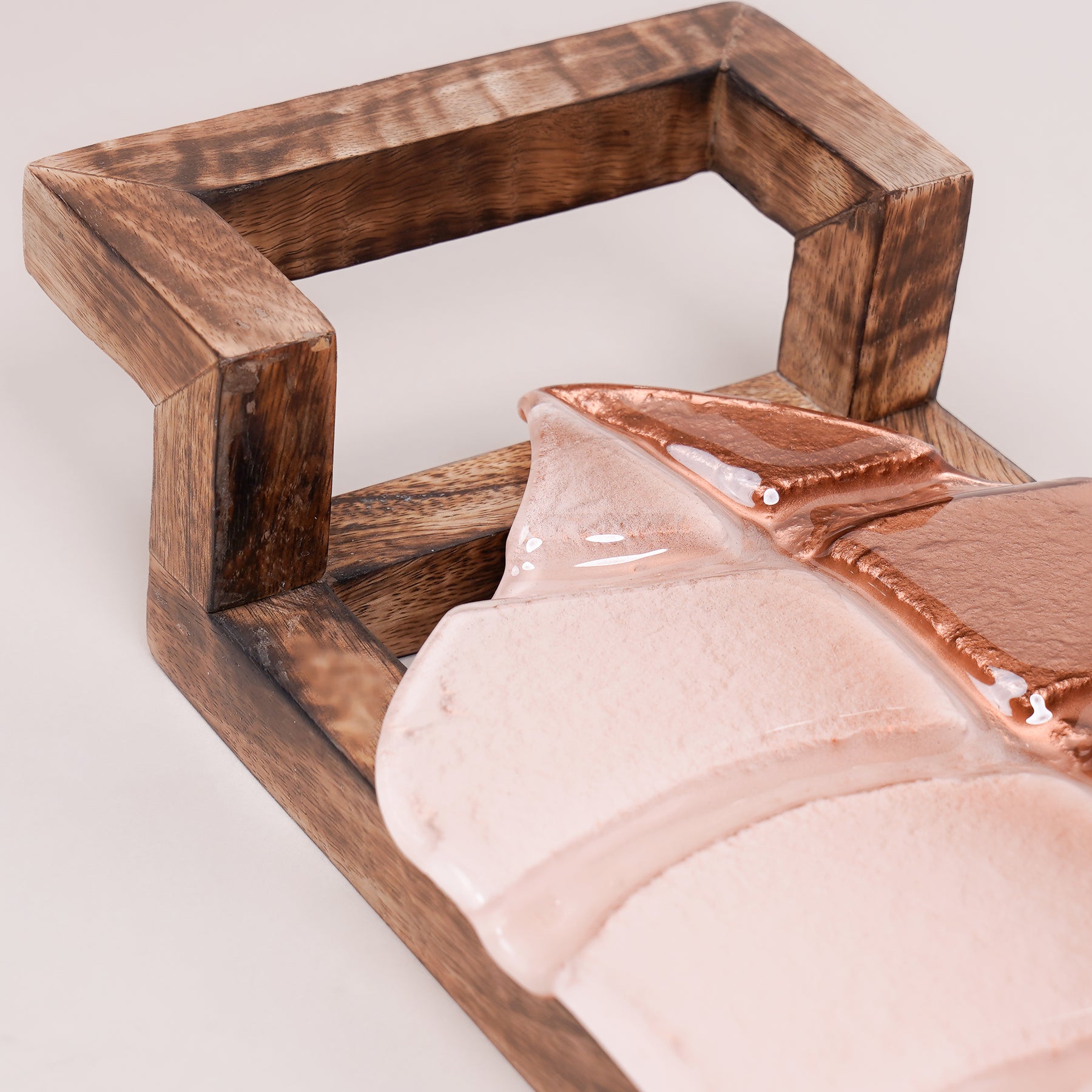 The Rose Éclat Leaf Décor piece pairs rose gold tones with soft pink glass, creating a radiant accent for any space. Intricately crafted with a leaf motif, it adds a modern yet delicate charm to consoles, coffee tables, or shelves.