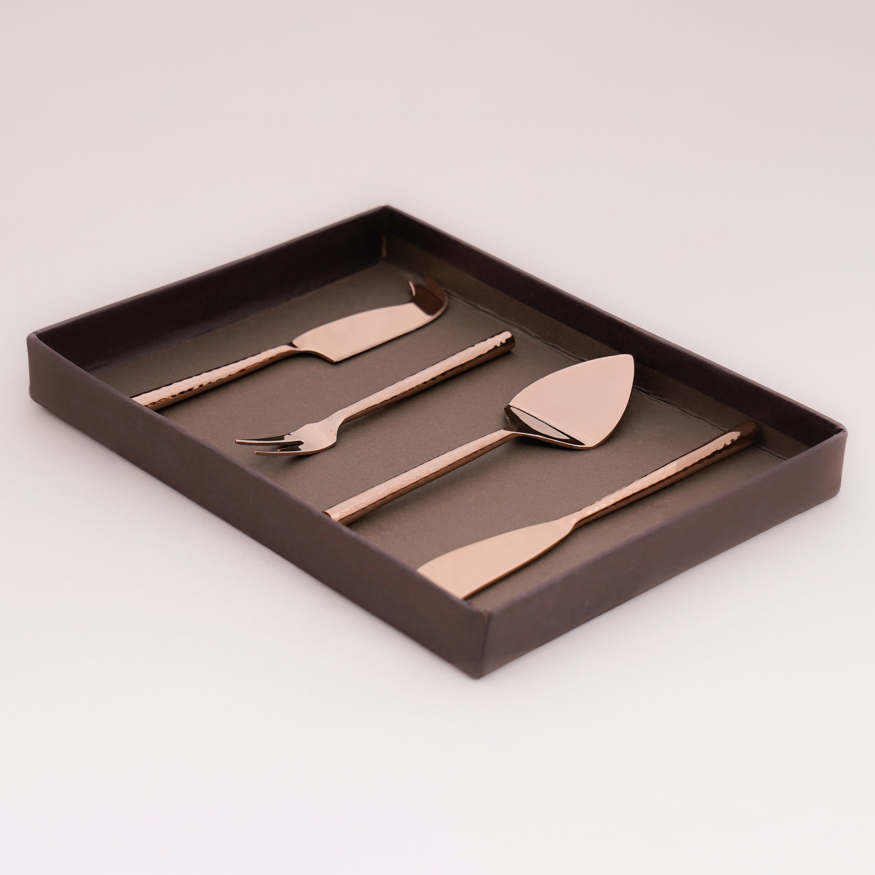 Crafted in smooth bronze, this cheese set combines style and practicality, perfect for serving fine cheeses.