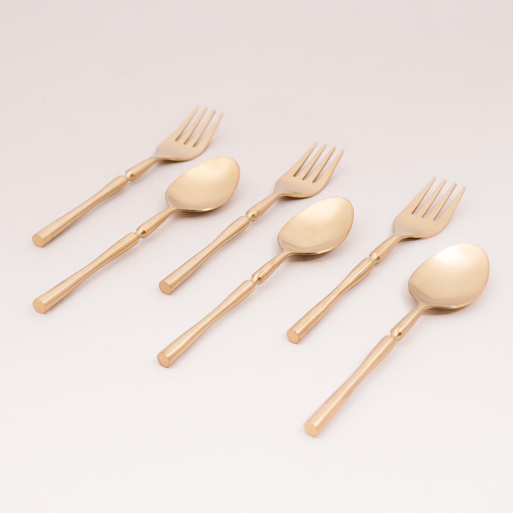 In sleek smooth gold, this 12-piece spoon & fork set transforms everyday dining into a luxury experience.